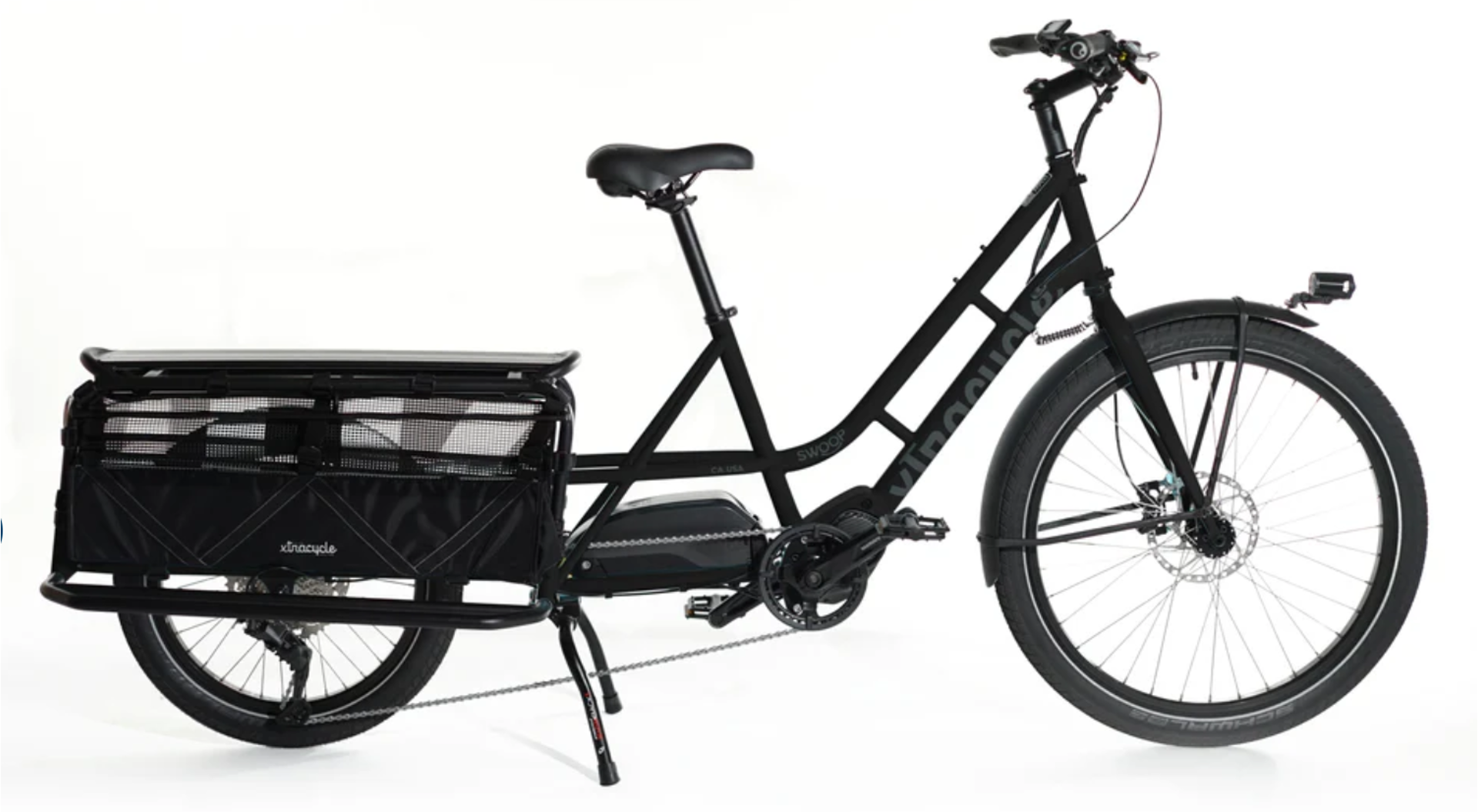 Perfect for families carrying multiple kids & friends. The swooping step-thru frame and perfectly balanced geometry makes the Swoop easy to share and a joy to ride. The low center of gravity promises it handles just like your favorite bike, even when loaded up.